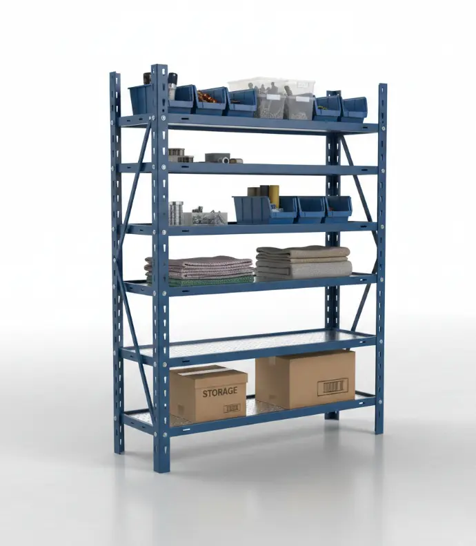 Versatile and durable slotted angle racks for customized storage solutions and space optimization.