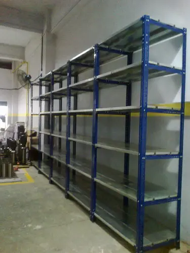Versatile and durable slotted angle racks for customized storage solutions and space optimization.